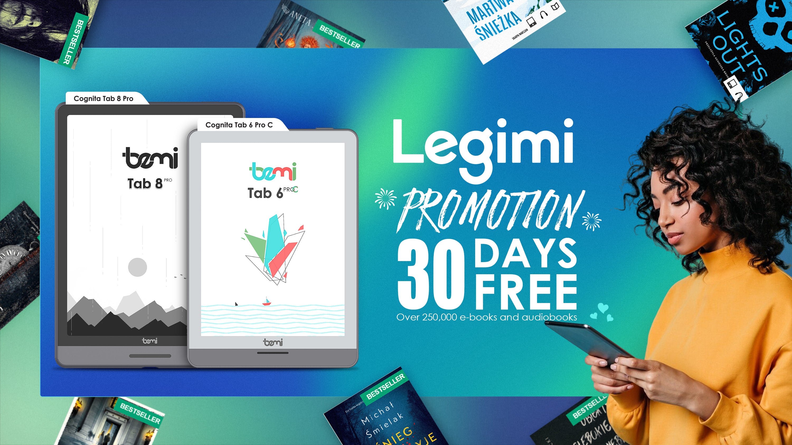 When you purchase a Bemi Cognita Tab 8 Pro or Bemi Cognita Tab 6 ProC, you’ll receive 30 days of free access to Legimi’s entire library, including over 250,000 e-books and audiobooks.