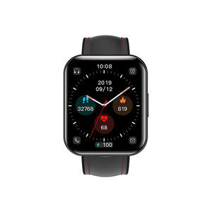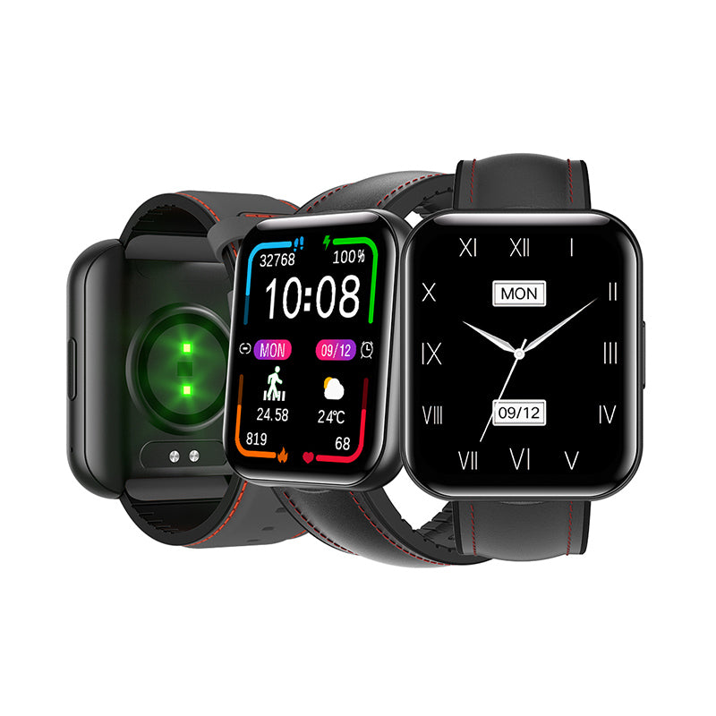 - Smartwatch in black and a beautiful 2-piece black leather strap with red stitching on the top and a comfortable black silicone one on the bottom