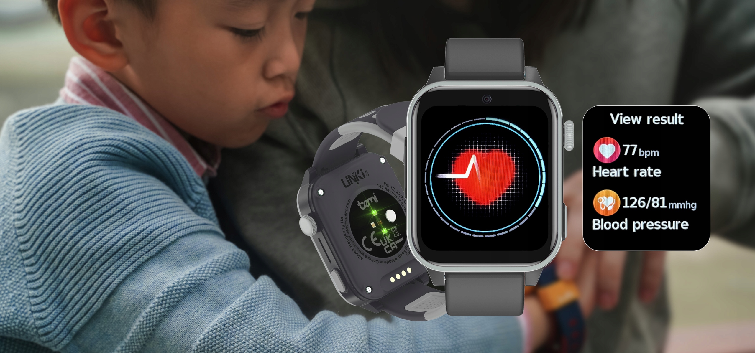 ⭐Bemi Linki 2 is a modern smartwatch designed with children's safety and health in mind. Equipped with a precise GPS+WiFi module with a ceramic antenna, it provides accurate real-time tracking of your child's location . Support for 4G/LTE technology enables voice and video calls , giving parents the ability to stay in constant contact with their children, no matter where they are. In addition, it has a built-in thermometer, heart rate sensor and saturation sensor, and the 2.5D panel has a unique dial key that further enhances the functionality of the watch. ⭐Stay healthy and safe with Bemi Linki2! ⭐The menu and application are available in the following languages: Polish, Ukrainian, Czech and many others ⭐ GPS+WiFi module with ceramic antenna:precise real-time location of your child for increased safety. ⭐ 4G/LTE support:enables voice and video calls, ensuring constant contact with your child. ⭐ Thermometer: monitor your child's body temperature at any time or continuously. ⭐ Advanced heart rate sensor:real-time heart rate measurement allows you to monitor your child's health and physical activity. ⭐ Pixart8009 saturation sensor: measures blood oxygen saturation levels for additional health monitoring. ⭐ SOS button: Your childcan immediately send an alarm signal to you in an emergency, increasing their sense of security. ⭐ Unique dial button:easy and quick control of the watch with an ergonomic dial. ⭐ GEO-fence function:designation of safe zones, notification when the child leaves the designated area. ⭐ Grey colour: fashionable and eye-catching, ideal for girls and boys who value style and functionality. ⭐ Multifunctionality:combines a locator, telephone, health monitor and watch, ideal for everyday use and travel. The Bemi Linki2 smartwatch has advanced features that allow you to assess your child's health : It has a built-in thermometer that allows you to monitor body temperature in two modes: on the wrist or in continuous mode. This gives parents full control over their child's health in real time. The smartwatch allows you to set temperature limits, and when these are exceeded, it immediately informs the parent. Equipped with an advanced Pixart8009 heart rate sensor , which, thanks to 3 LED diodes (2 green and 1 red) and a combination with an optical sensor, offers precise and fast monitoring of your child's heart rate . The device monitors blood oxygen saturation levels, providing accurate information about your child's health in real time. This is an extremely useful feature that allows parents to check key health indicators on an ongoing basis , ensuring complete control and peace of mind every day. Linki2 has a built-in heart rate sensor, similar to many adult watches. The device measures heart rate, blood pressure and saturation. The measurement can be taken both from the watch and remotely by the parent from the application. The data is stored in the application. Parents can view and compare results from different periods at any time. Bemi Linki 2 ensures maximum safety for your child thanks to advanced real-time location tracking . With GPS, AGPS, LBS and WiFi positioning, the smartwatch accurately determines your child's location, regardless of conditions. This smartwatch also offers a safety zone setting feature that alerts you when your childleaves a designated area. This reliable solution allows for constant location monitoring , giving parents complete control and peace of mind. Bemi Linki 2 allows parents to listen to what is happeningaround the watch andsee who theyare spending timewithviathe built-in camera. This gives parents the opportunity to find outwhat is happening around their child (for example, when they do not answer your phone call). Withthe SOS function, your child will always be safe. They can quickly and easilycall for help.Bemi Linki allows you to sendan immediate alarm message ormake a phone call witha single button. Toactivate the SOS button,press and holdit for3 seconds. The parentwill immediately receive theSOSalarmontheir device, and the smartwatch will also sendan alarm message tothe saved emergency contacts. Once activated with LTE/4G , Bemi Linki 2 allows you to make and receive calls from pre-saved contacts. Your child can use it like a normal phone, sending recorded voice messages and making video calls to contacts in their phone book. Bemi LINKI 2 is alsoa durable device that will prove itself ineveryday use. Thanks toIP67 protection, your child canfreely use thewatch during outdoor activities. The device isresistant to dust,moisture andshort-term immersion inwater. ❌ Warning! Do not bathe or swim with the watch on your wrist. In addition to safety features,theBemi Linki 2smartwatch also offersa range of interactive features that make it a pleasure to use.The physical activity monitor encourageschildren to move by recordingsteps,distance andactivity time. Built-in educational gamesdevelopchildren'slogical skills andmemory, combining fun with learning. In addition,the built-in camera allows youto take photos, giving your child the opportunityto play creatively andshare their adventures with the family. Bemi Linki2 has a built-in universal knob button that adds an extra layer of fun and functionality. With a simple twist , children can easily change the watch face, double-press the button to change the icon layout style in the menu, or scroll up and down the menu of functions and options. This intuitive design makes navigating the smartwatch easy and engaging, giving children greater and easier control over the device. Bemi Linki2 has 4 built-in watch faces. Press the device screen for a few seconds, and then you can change your watch face to suit your style or preferences. Bemi Linki2 is compatible with smartphones running Android (4.4 or later) and iOS (8.0 or later) operating systems. It is supported by the completely free "SeTracker2" app, which can be downloaded from the App Store or Google Play Store. The devic