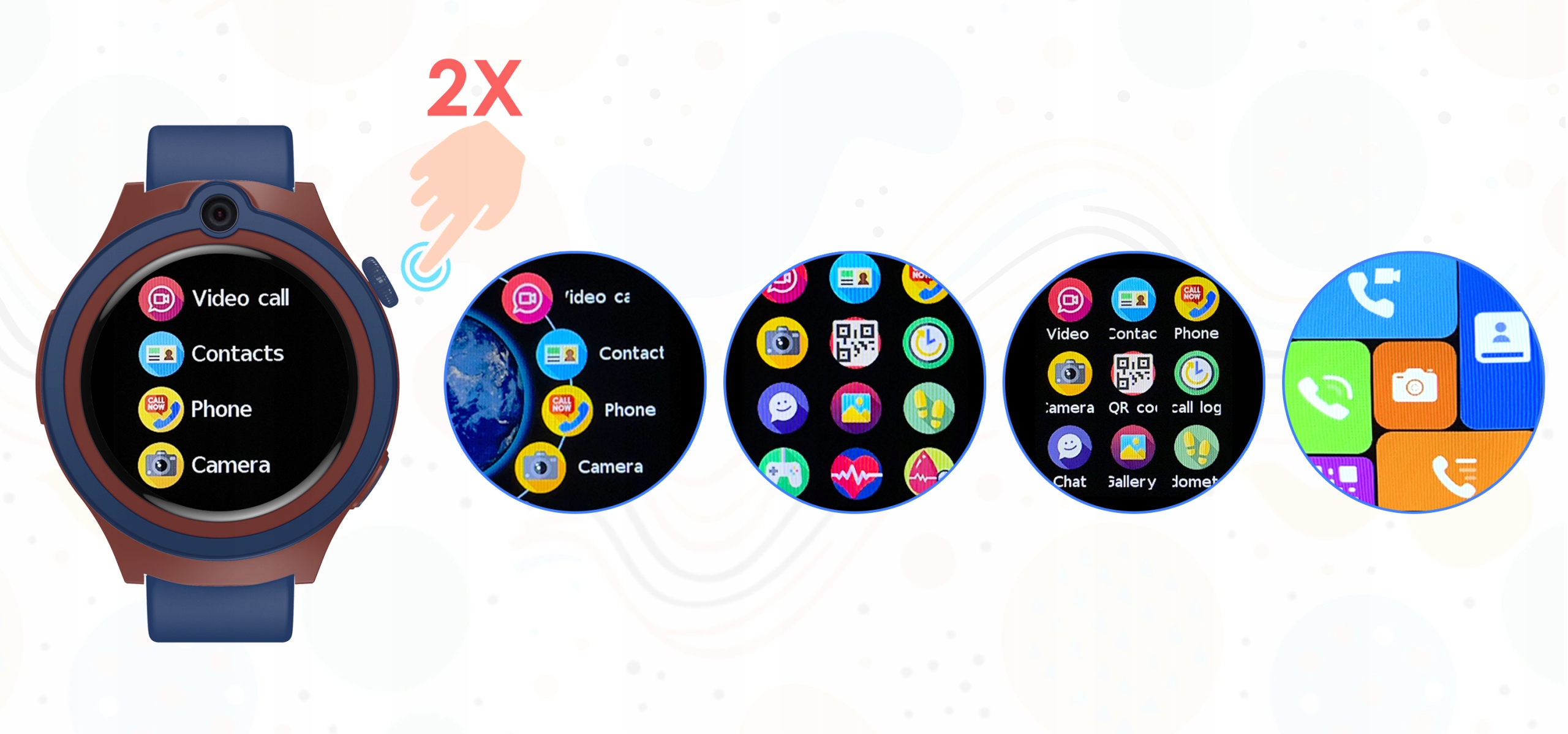 ⭐Bemi Linko2is equipped withaninnovative andversatileknob button that combinesintuitive control withease of use.By turning it, you canchange the watch face, andby pressing it twice, you can selecttheappropriateicon layout inthe menu. Thanks toits ergonomic design, children caneasily andquickly navigatethe smartwatch's functions, makingit extremely simple to use evenfor the youngest users. Thisunique solution increases the functionality of the watch, making itthe perfect companion.