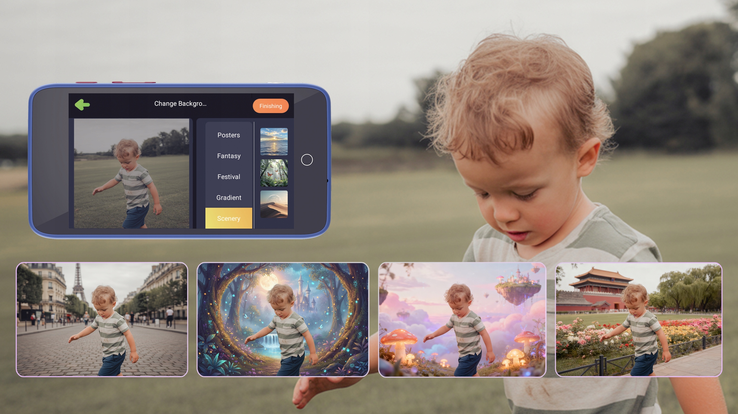 Transform any scene in seconds! With AI, children can transport themselves anywhere from outer space to a sunny beach. They can add colourful, futuristic backgrounds or create their own posters!