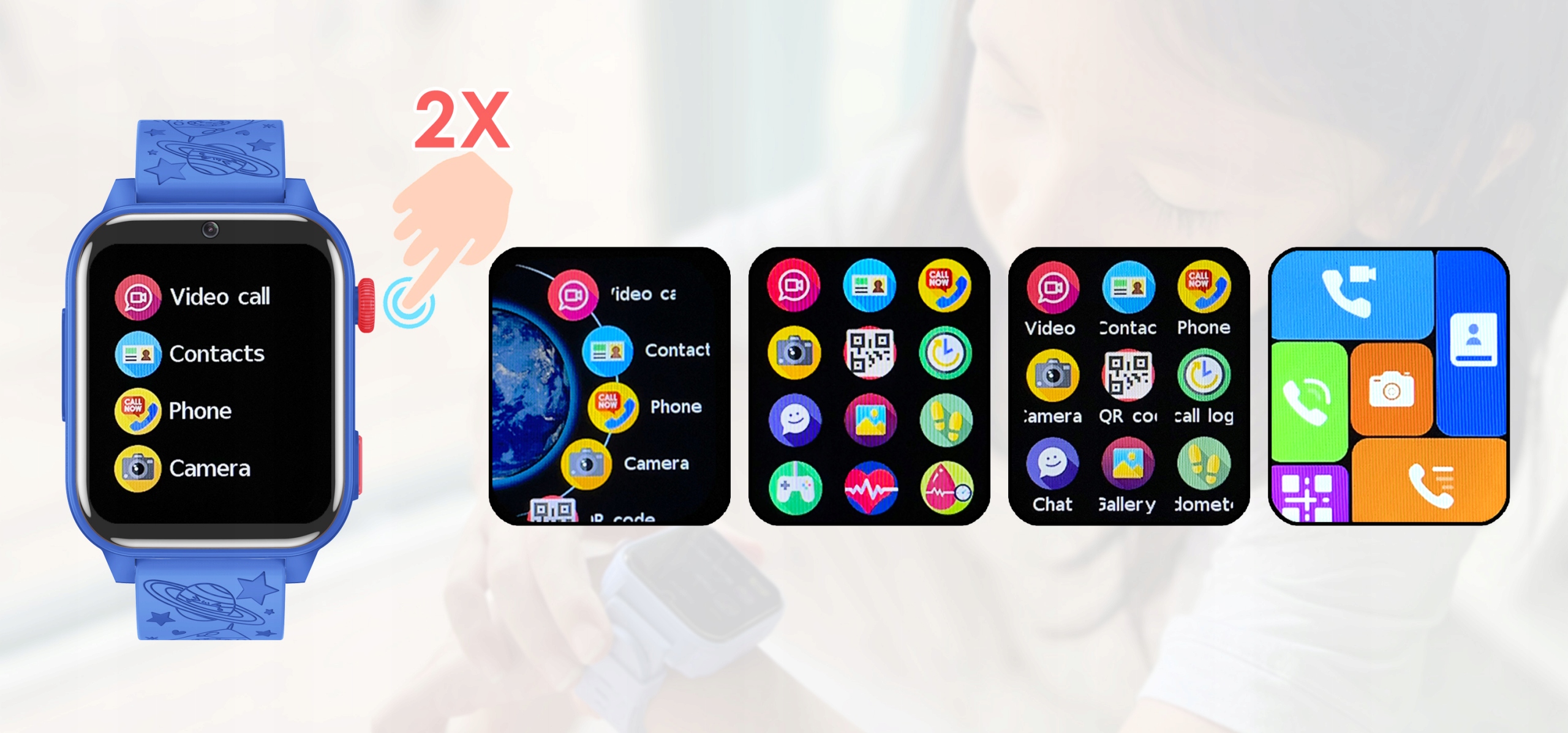 ⭐ Bemi Play2is equipped withaninnovative andversatileknob button that combinesintuitive control withease of use.Turn the knobto change the watch face, andpress it twice to selecttheappropriateicon layout inthe menu. Thanks toits ergonomic design, children caneasily andquickly navigate thesmartwatch's functions, makingit extremely simple to use evenfor the youngest users. Thisunique solution increases the watch's functionality, making itthe perfect companion.