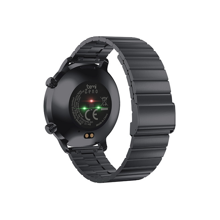 Bemi Zeno has an advanced heart rate and saturation sensor (sensor + 3 LEDs, 2 green and 1 red + infrared sensor). The sensor uses light from the LEDs to illuminate the wrist and, through different blood flow rates and the associated light scattering, monitors changes in heart rate.