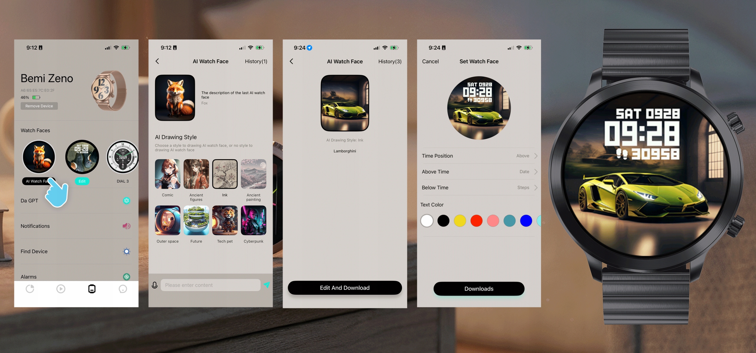 With this feature, AI will create a dial background based on your voice description. Provide details of what you want to appear on the dial and AI will create it for you.