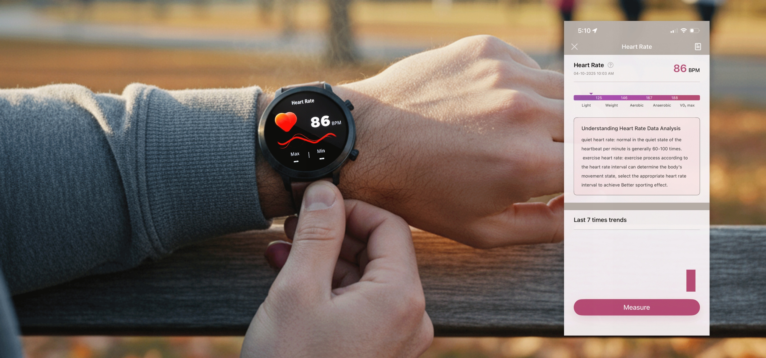 ⭐ Heart rate (the Bemi Fit app also has a 24-hour heart rate monitoring mode with the option to set how often measurements are taken and an alert if the heart rate is too high).