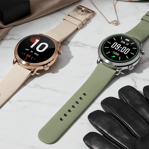 The set includes 2 straps (silver Milanese and olive-coloured silicone). This allows you to conveniently change the look of your device from sporty to elegant in an instant, according to your preferences.