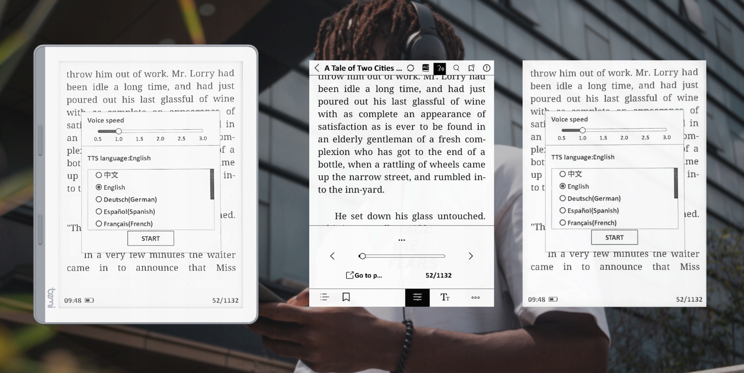 TTS – text to speech – is a speech synthesiser or a function that converts written text into sound. Thanks to this function, Cognita Tab 5 allows you to turn a book you are reading into an audiobook.