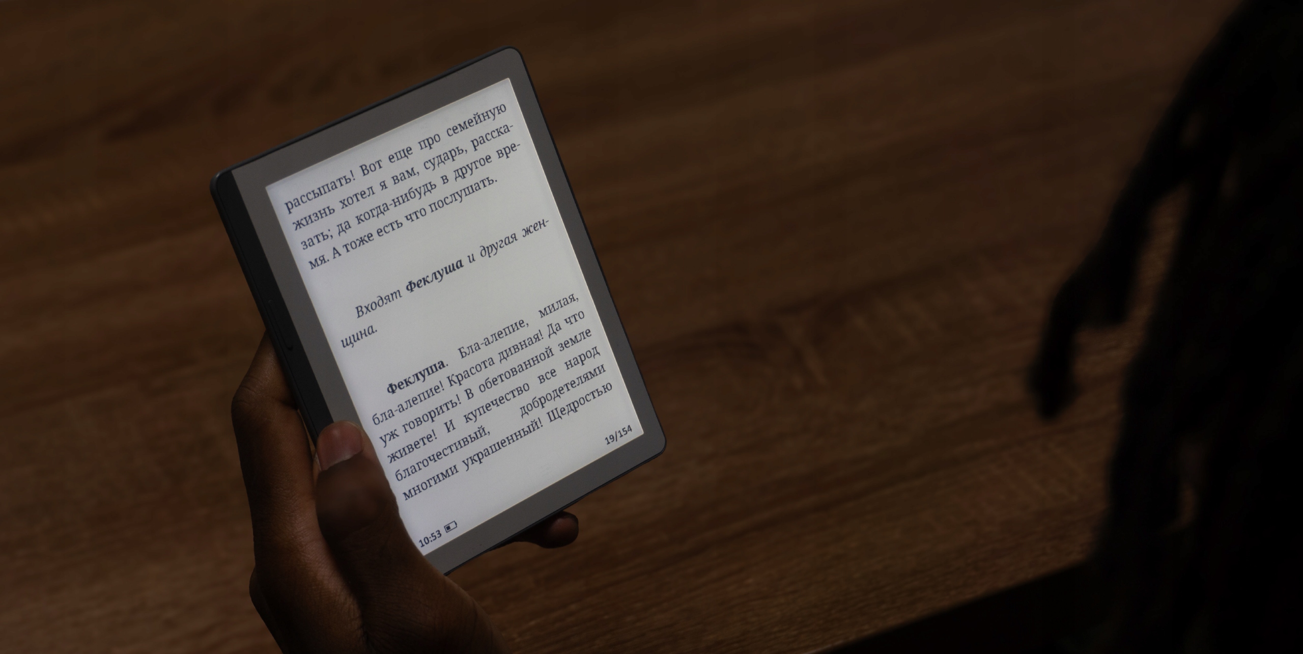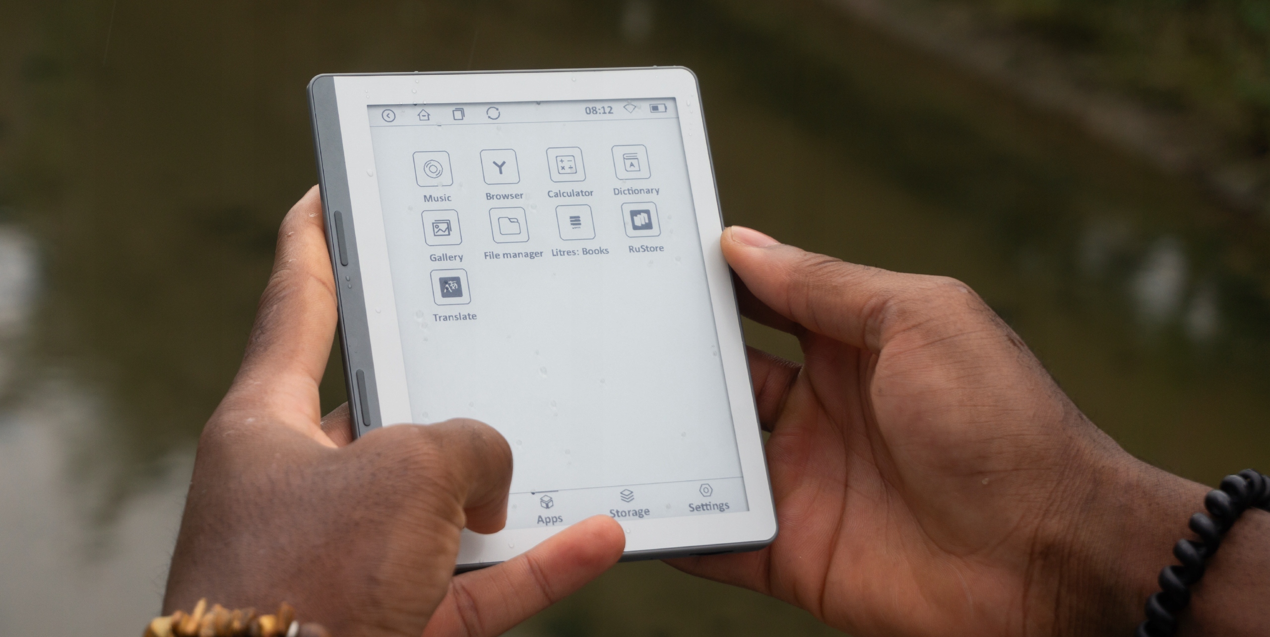 The Cognita Tab 5 is equipped with a 5.76" monochrome screen with e-paper technology that imitates the effect of traditional paper printing. The screen has a resolution of 920x680 pixels and a high contrast of 198 ppi, ensuring comfortable reading without eye strain. The text is clear and easy to read.