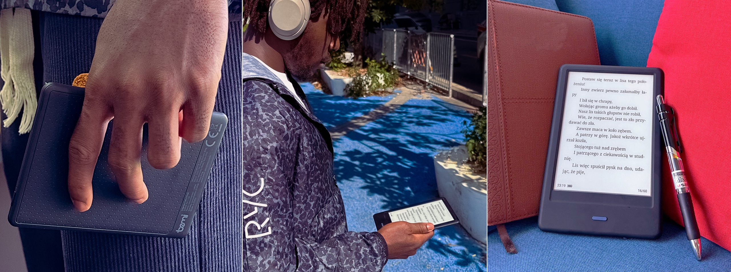 The reader has a 6" e-ink screen with Carta technology, a built-in touch panel and smart LED backlighting with colour adjustment. It impresses with its practicality, ease of touch operation, lightness and versatility.