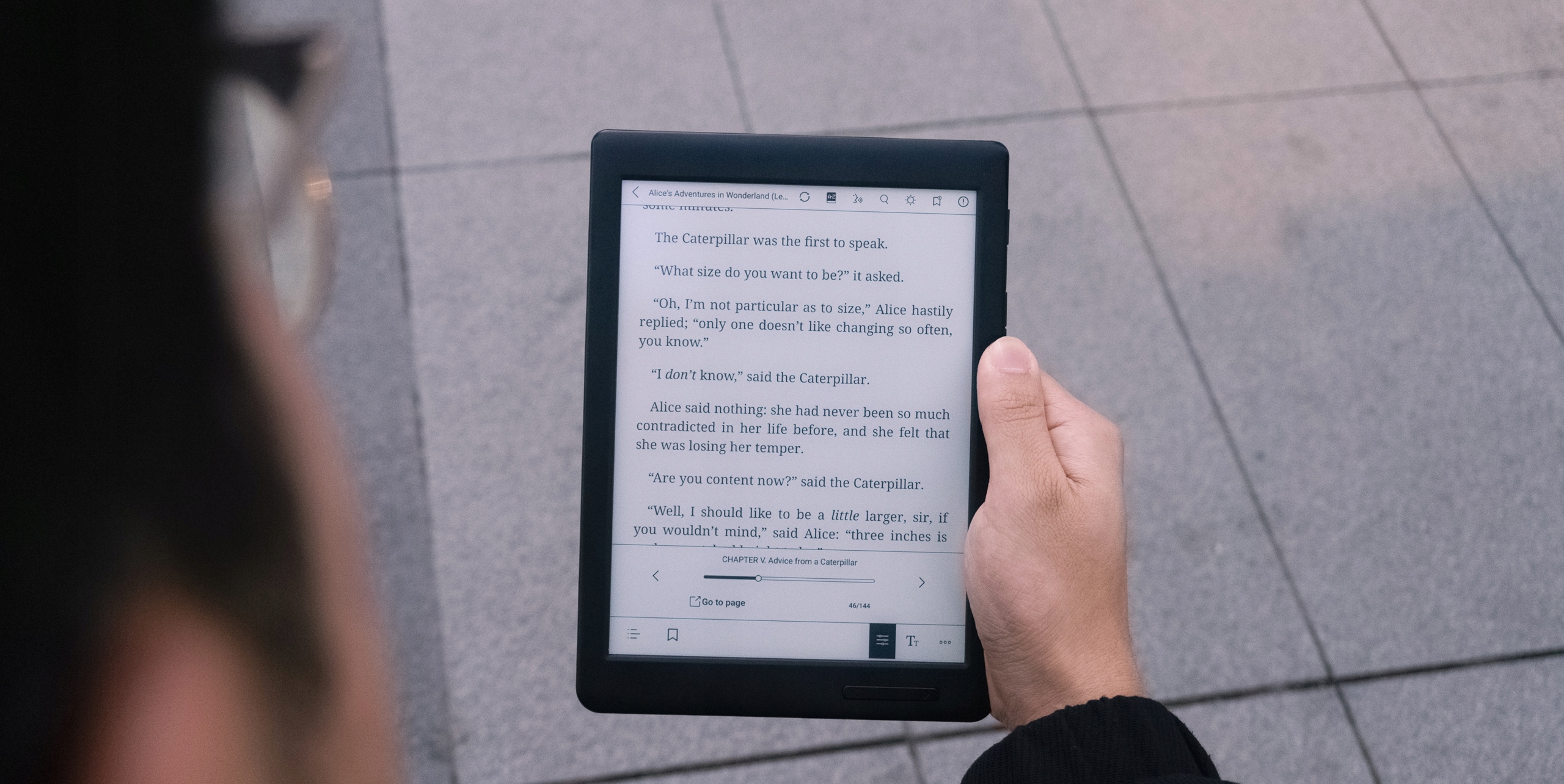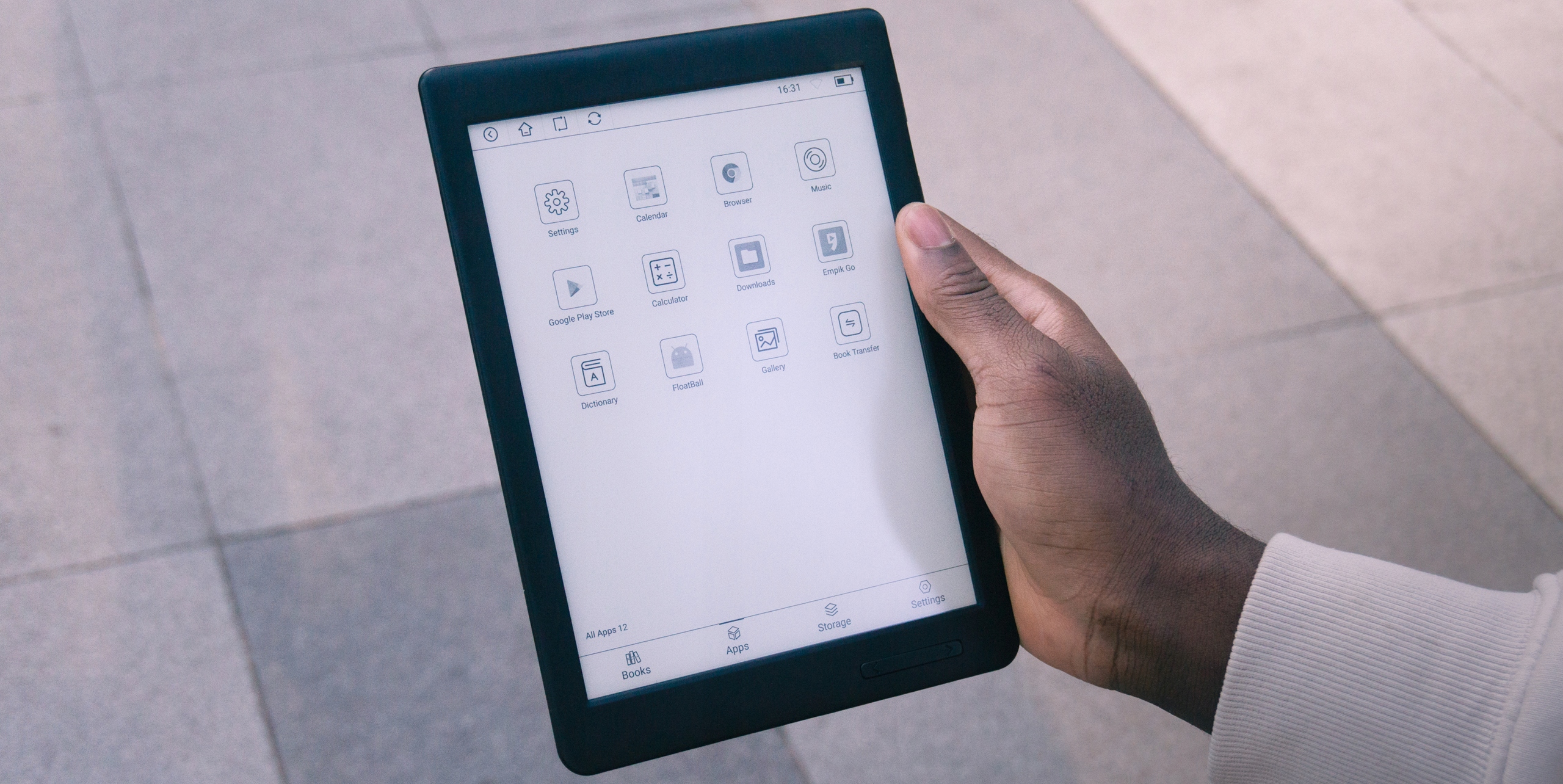 The reader has a 7.8" e-ink screen with a 16-step grey scale, which imitates the effect of traditional paper printing. The resolution of 1872 x 1404 pixels (300 ppi) ensures super comfortable reading in large format without eye strain. It is comfortable to read books, publications or diagrams with a lot of detail. The text is clear and easy to read.