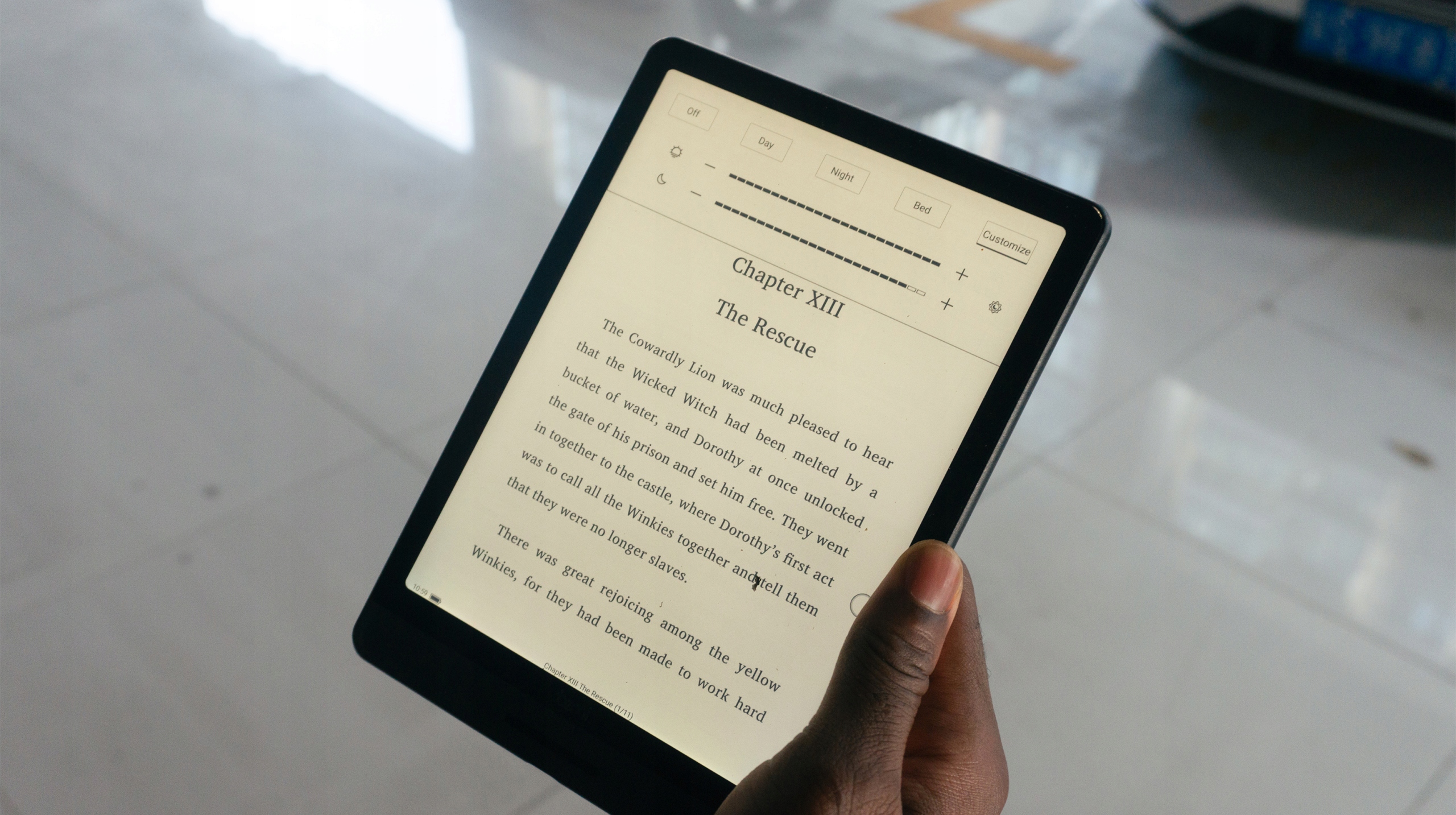 The reader has a 7.8" e-ink screen with Carta technology, a built-in touch panel and smart LED backlighting with colour adjustment. It impresses with its practicality, ease of touch operation, lightness and versatility.