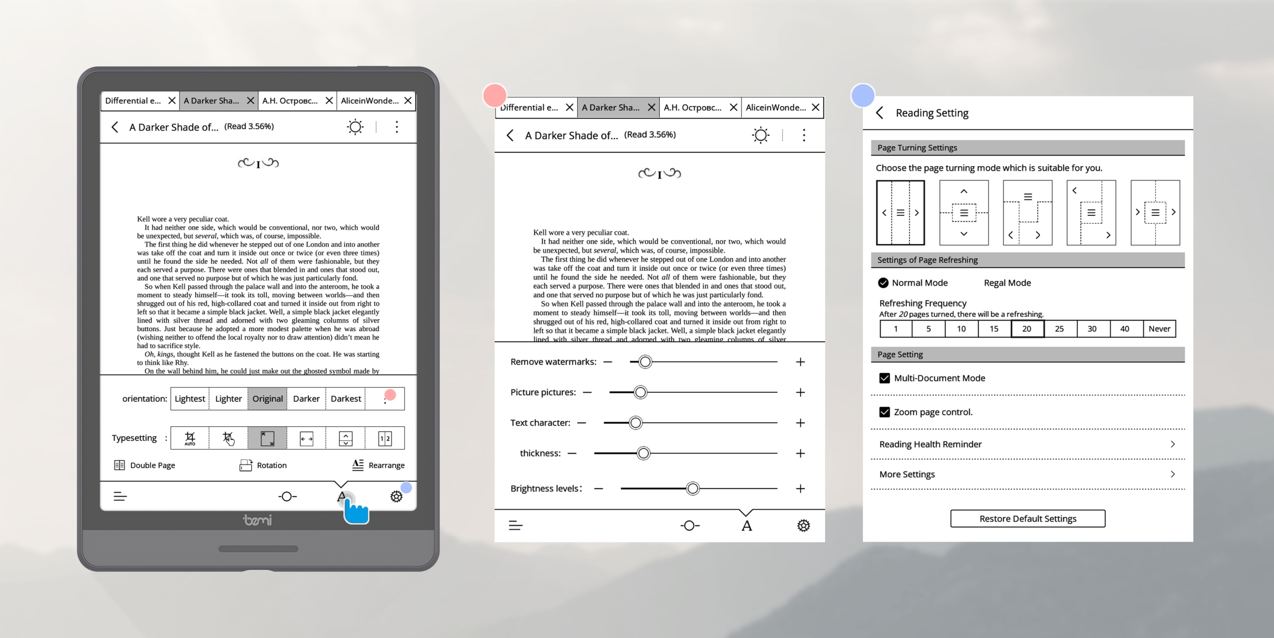 In addition, the reader has default settings for reading during the day, at night and in bed.