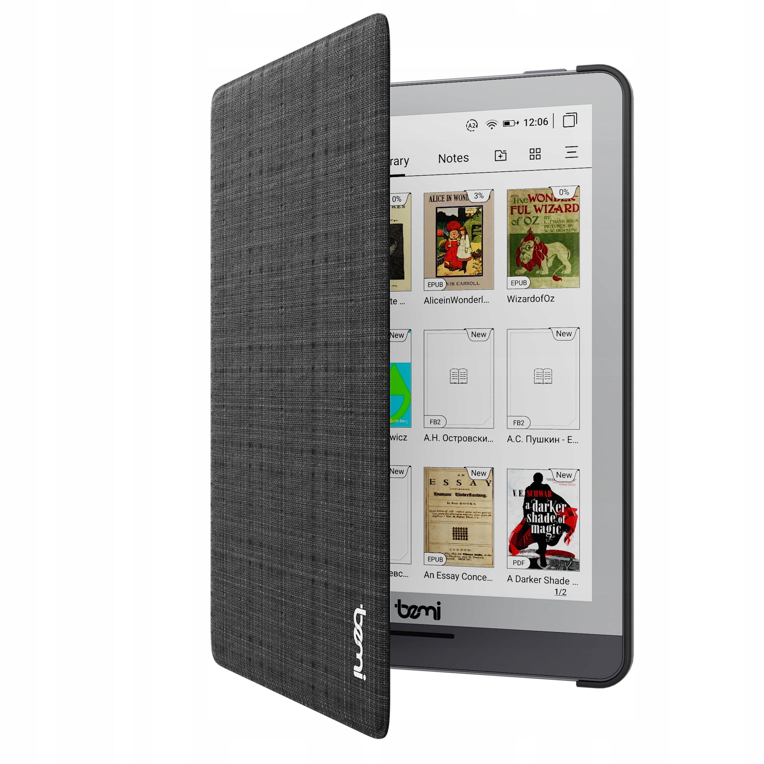 Original dedicated case for the Bemi Cognita Tab 6+ / Tab 6 ProC e-reader with a closure sensor (hall sensor), fabric texture / dark grey