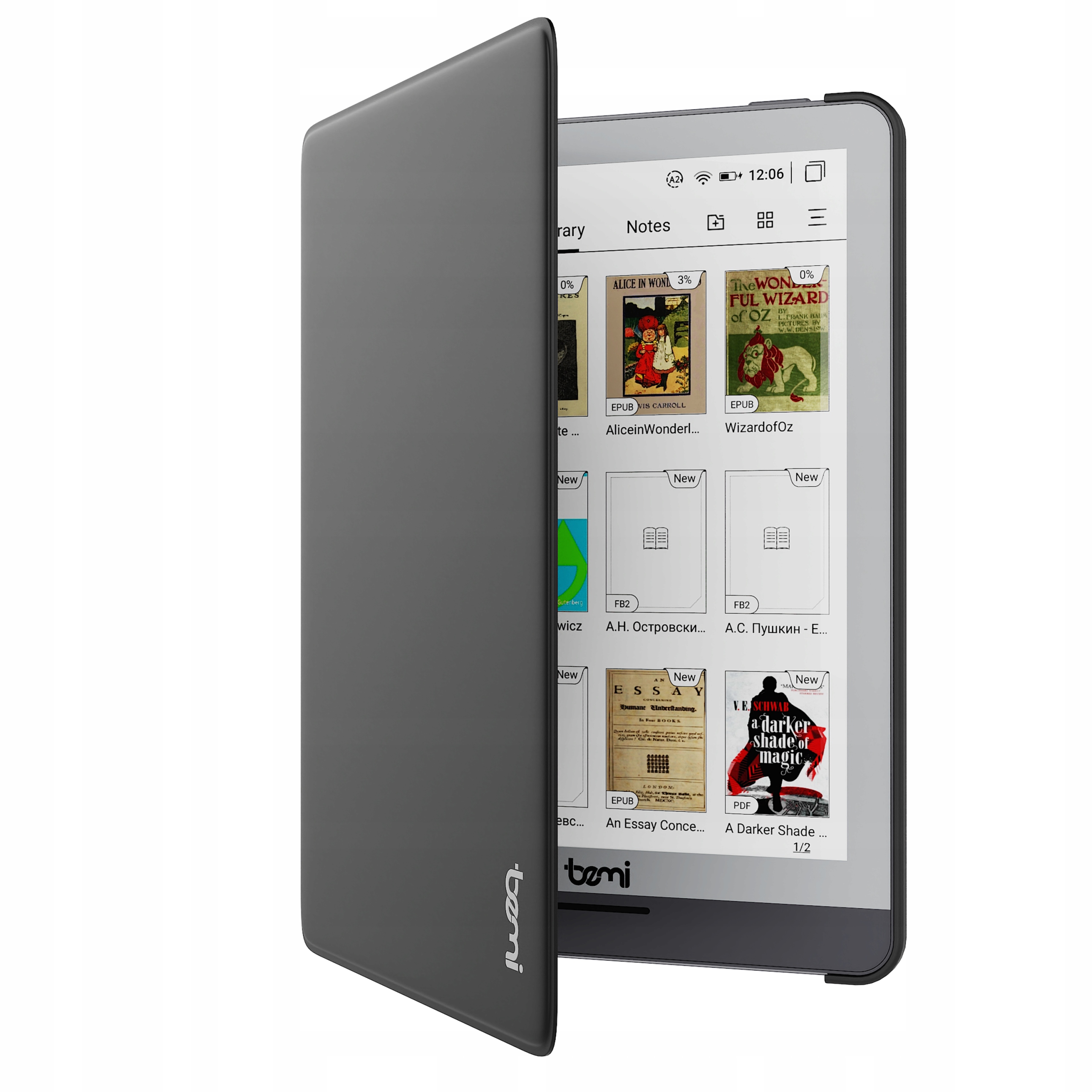 Original dedicated case for the Bemi Cognita Tab 6+ / Tab 6 ProC e-reader with a closure sensor (hall sensor) / PU material, very pleasant, rubberised / dark grey
